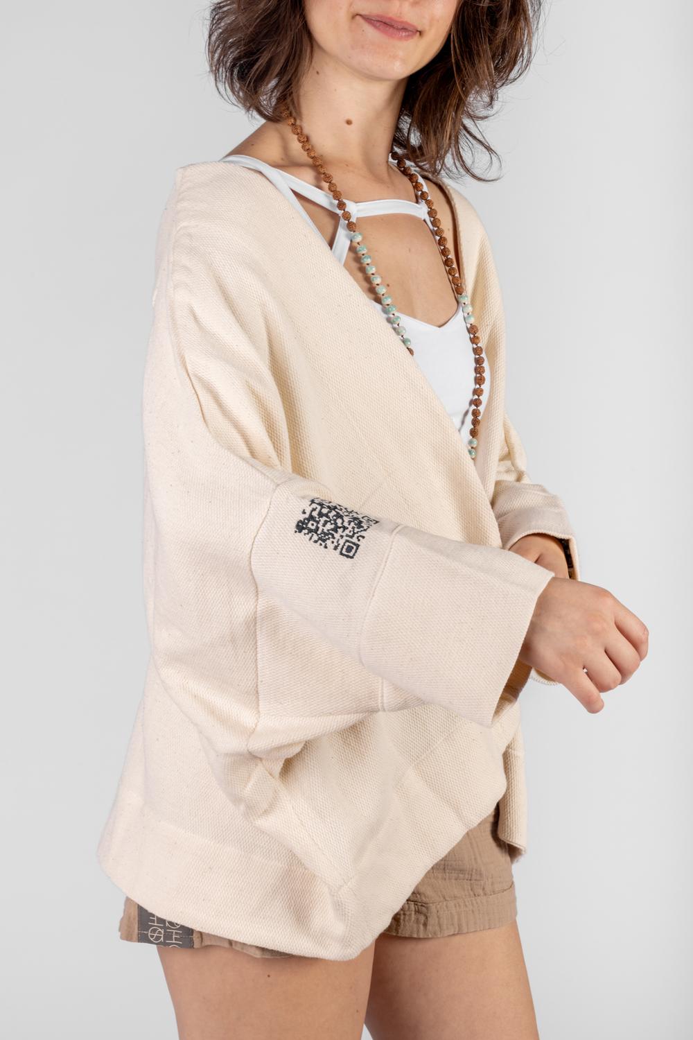Tezgah Dokuması Özel Üretim Nakışlı Krem Kısa Kimono