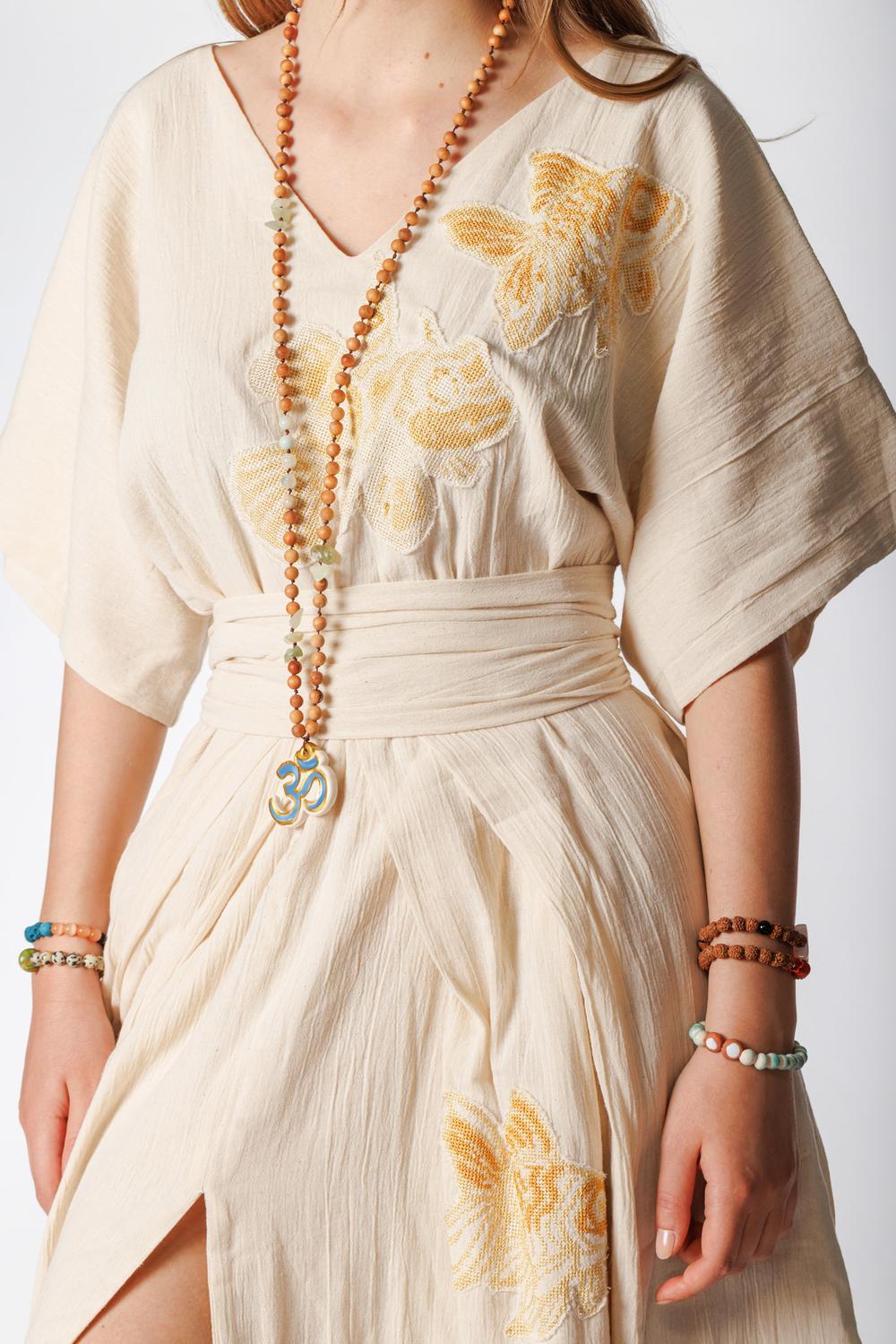 Tezgah Dokuması Kanaviçe Nakışlı Şile Bezi Elbise - Sarı Balık